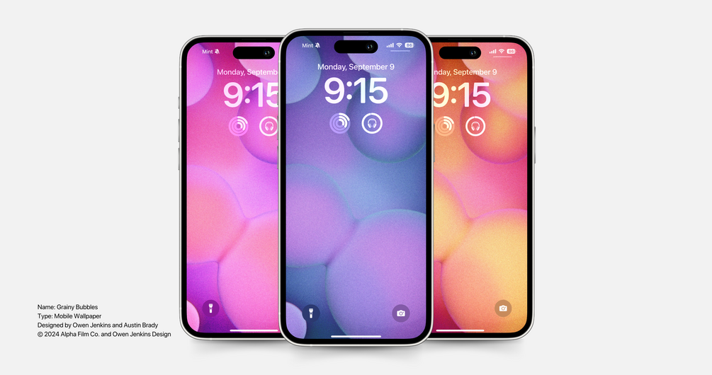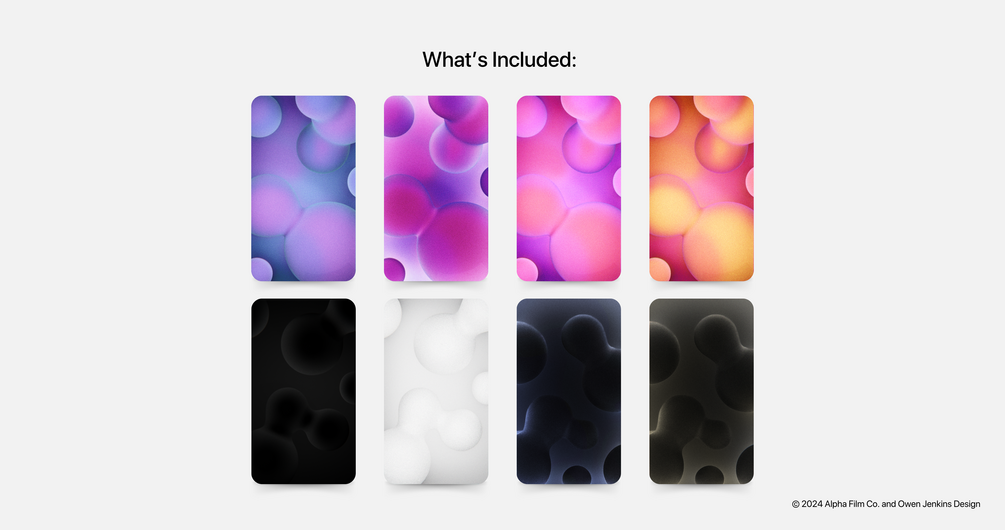 The Grainy Bubbles wallpaper pack, featuring 16 wallpapers. These wallpapers have been carefully crafted with subtle grain and color gradients throughout the design. Included: 8 mobile wallpapers and 8 desktop wallpapers.